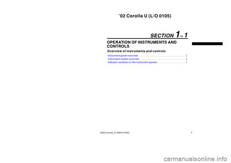 Free Reading 2002 Toyota Corolla Overview Of Instruments And Controls Manual